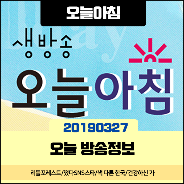 오늘아침 20190327 오늘 방송정보 리틀포레스트, 떴다 SNS스타, 色 다른 한국, 건강하신 家