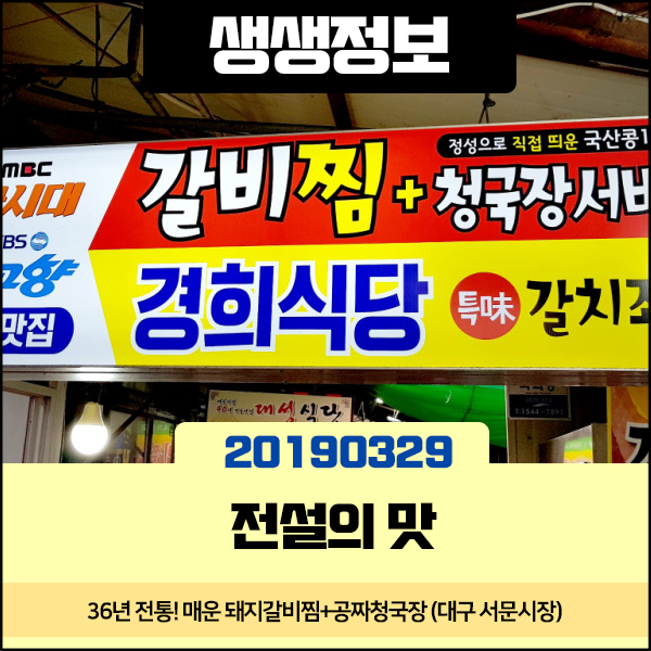 생생정보 20190329 전설의 맛 - 36년 전통! 매운 돼지 갈비찜 + 공짜 청국장 & 54년 전통! 두부 오징어 두루치기