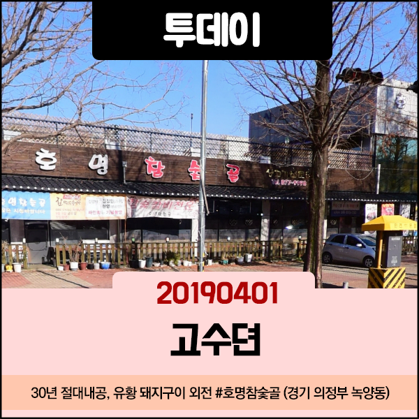 투데이 20190401 고수뎐 - 30년 절대내공, 유황 돼지구이 외전 호명참숯골 (경기 의정부 녹양동)