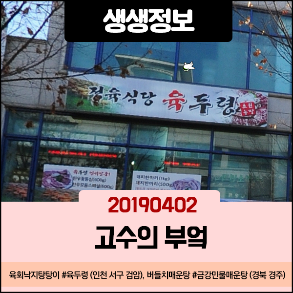 생생정보 20190402 고수의 부엌 - 육회낙지탕탕이 (인천 서구 검암) 버들치매운탕 (경북 경주)