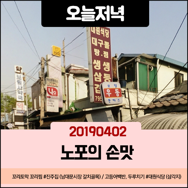 | 오늘저녁 20190401 돈이 안 아깝다 바다향횟집 (경기 파주), 맛조은곱창 (인천 미추홀 도화동) (0) | 2019.04.01 |