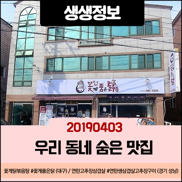 생생정보 20190403 우리 동네 숨은 맛집 - 꽃게닭볶음탕 (대구) & 연탄고추장삼겹살 (경기 성남)