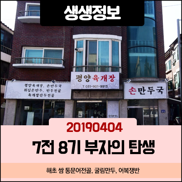생생정보 20190404 7전 8기 부자의 탄생 - 해초 쌈 통문어전골, 굴림만두 어복쟁반