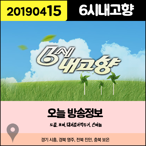 6시내고향 20190415 오늘 방송정보 - 도장 (경기 시흥), 호미 (경북 영주), 돼지감자깍두기 (전북 진안), 산마늘 (충북 보은)