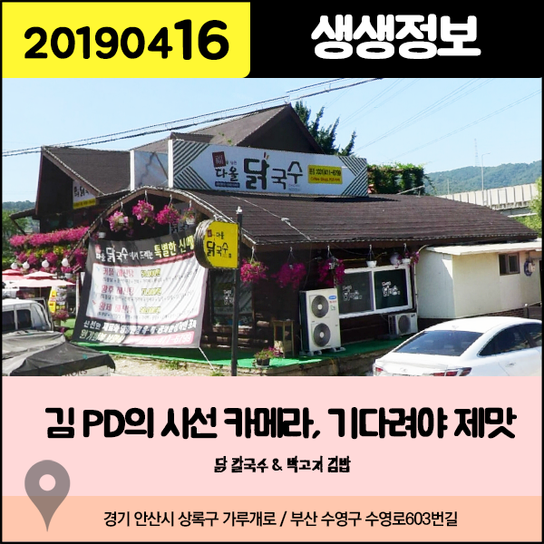 생생정보 20190416 김 PD의 시선 카메라, 기다려야 제맛 - 닭 칼국수 & 박고지 김밥 (경기 안산시, 부산 수영구)