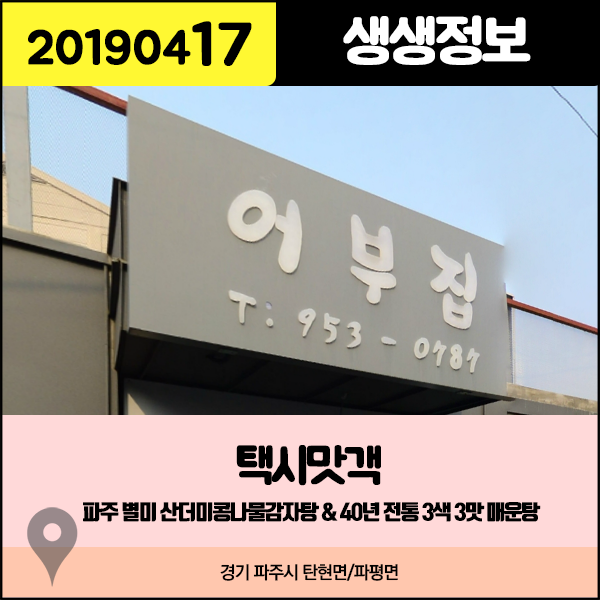 생생정보 20190417 택시맛객 - 파주 별미 '산더미콩나물감자탕' & 40년 전통 '3색 3맛 매운탕' (경기 파주시)