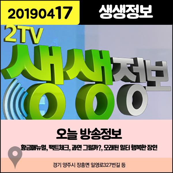 생생정보 20190417 오늘 방송정보 - 황금매뉴얼, 팩트 체크, 과연 그럴까?, 오래된 일터 행복한 장인 (오.일.장)