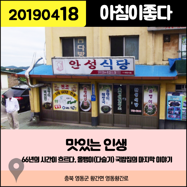 아침이좋다 20190418 맛있는 인생 - 66년의 시간이 흐르다. 올뱅이(다슬기) 국밥집의 마지막 이야기