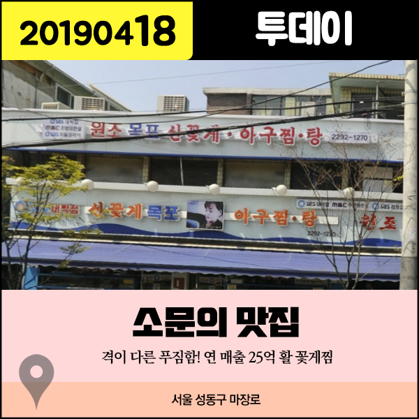 투데이 20190418 소문의 맛집 - 격이 다른 푸짐함! 연 매출 25억 활 꽃게찜 (서울 성동구)