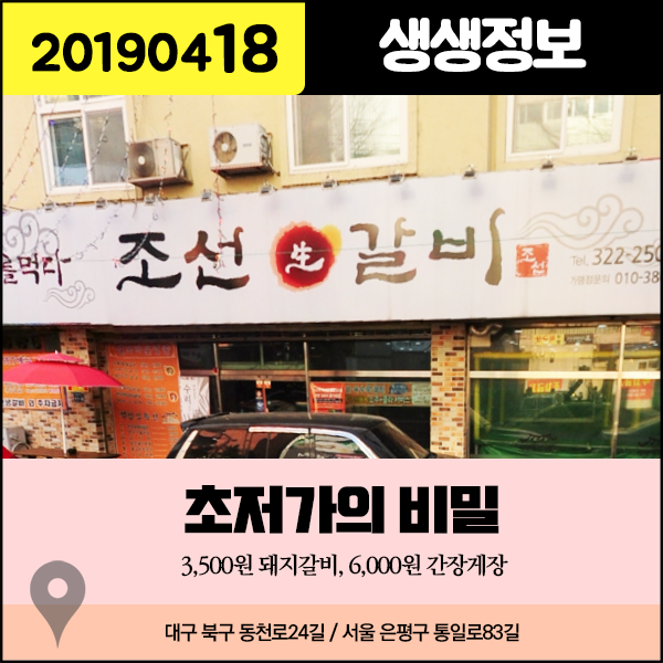생생정보 20190418 초저가의 비밀 - 3500원 돼지갈비, 6000원 간장게장 (대구 동구, 서울 은평구)