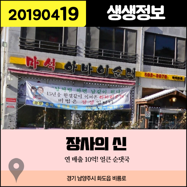 생생정보 20190419 장사의 신 - 연 매출 10억! 얼큰 순댓국 (경기 남양주시)