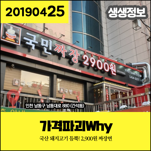 생생정보 20190425 가격파괴Why - 국산 돼지고기 듬뿍! 2900원 짜장면 (인천 남동구)