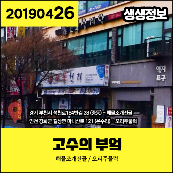 생생정보 20190426 고수의 부엌 - 해물조개전골, 오리주물럭 (경기 부천시, 인천 강화군)