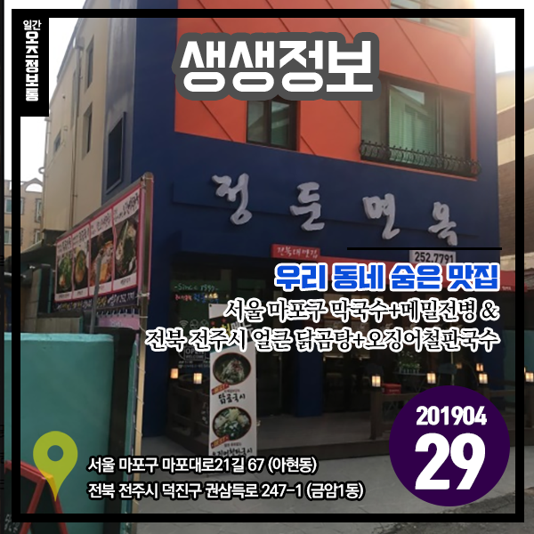생생정보 20190429 우리 동네 숨은 맛집 - 마포구 막국수+메밀전병 & 전주시 얼큰 닭곰탕+오징어철판국수 (서울 마포구, 전북 전주시)