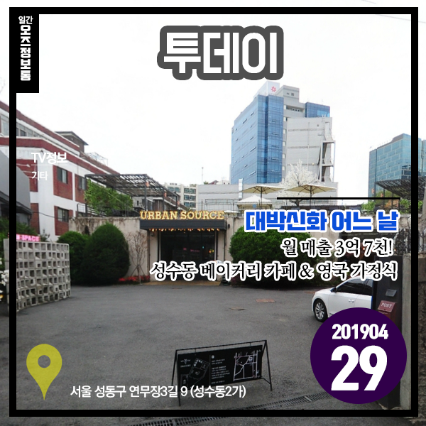 투데이 20190429 대박신화 어느 날 - 월 매출 3억 7천! 성수동 베이커리 카페 & 영국 가정식 (서울 성동구)