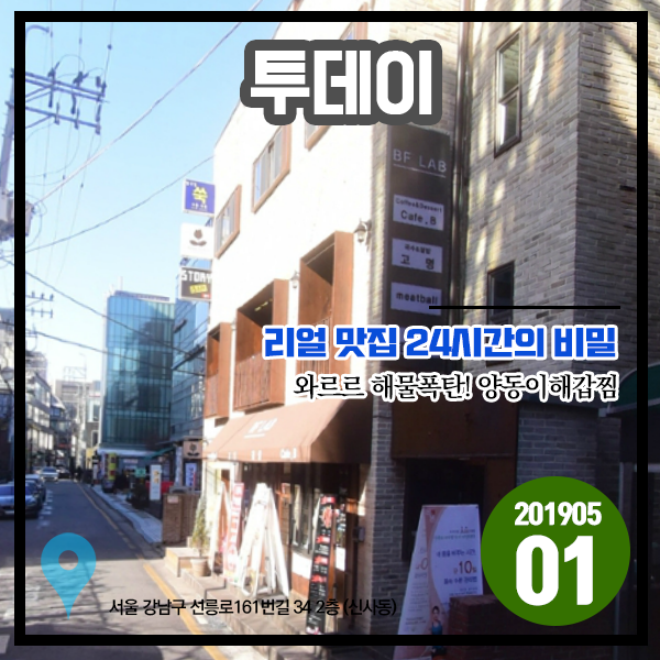 투데이 20190501 리얼 맛집 24시간의 비밀 - 와르르 해물폭탄! 양동이해갑찜 (서울 강남구 압구정로데오거리)