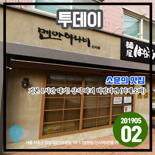 투데이 20190502 소문의 맛집 - 기본 1시간 대기! 상식 파괴 비빔라면 (서울 서초구 신사역)