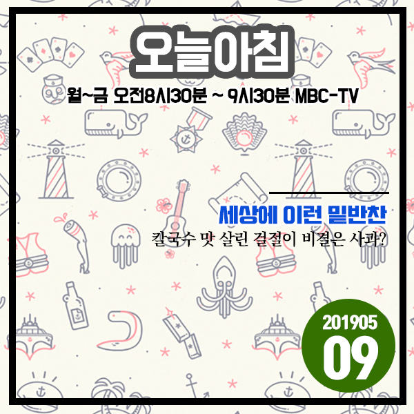 | 오늘아침 20190506 방송정보 - 반값의 속사정, 색 다른 한국, 톡톡! 밥상물가, 리틀포레스트 (0) | 2019.05.06 |