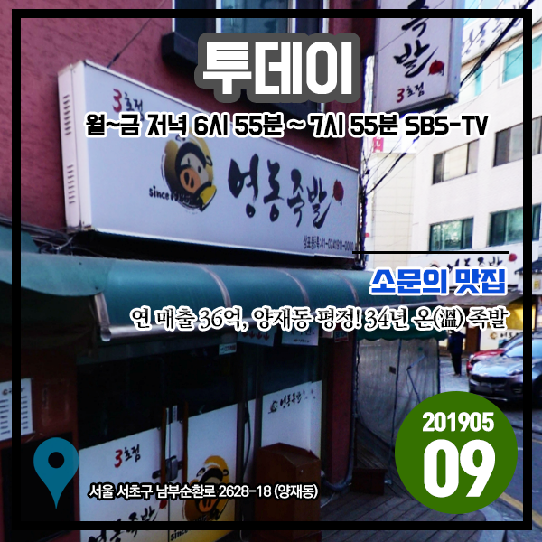 투데이 20190509 소문의 맛집 - 연 매출 36억, 양재동 평정! 34년 온(溫) 족발 (서울 서초구)