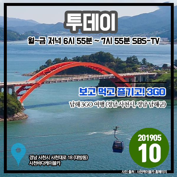 투데이 20190510 보고 먹고 즐기고! 3GO - 남해 3GO 여행 (경남 사천시, 경남 남해군)
