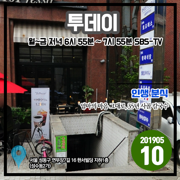투데이 20190510 인생 분식 - 엄마의 마음 그대로, 35년 사골 칼국수 (서울 성동구 성수역)