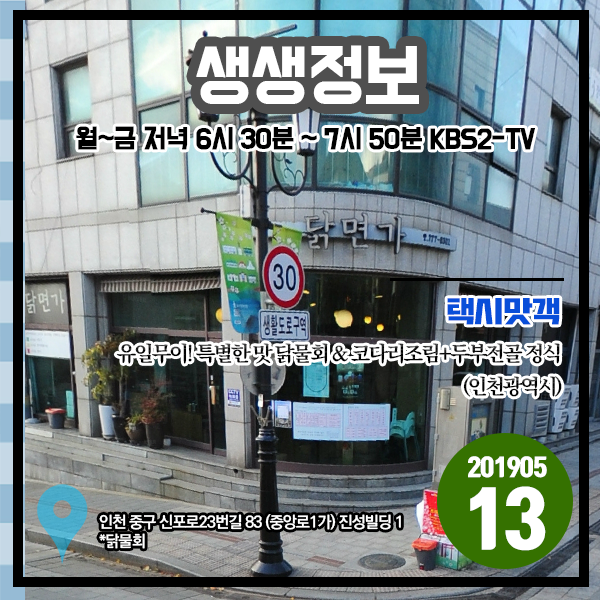 생생정보 20190513 택시맛객 - 유일무이! 특별한 맛 닭물회 & 코다리조림+두부전골 정식 (인천 중구,인천 계양구)