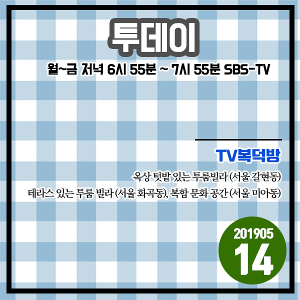 투데이 20190514 TV 복덕방 - 동갑내기 친구들 같이 살 집 구하기 (서울 갈현동, 서울 화곡동, 서울 미아동)