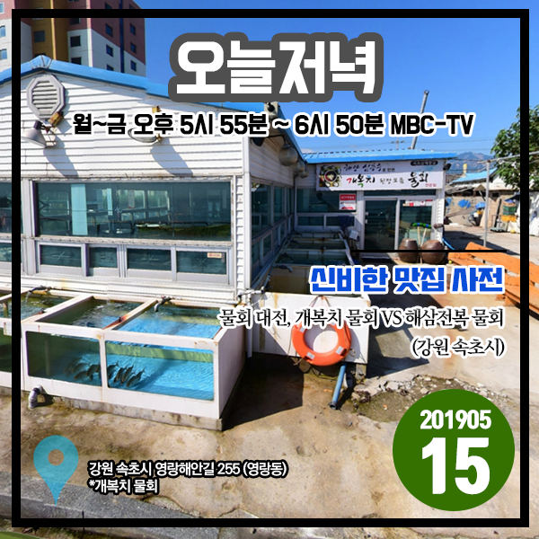 오늘저녁 20190515 신비한 맛집 사전 - 물회대전, 개복치 물회 VS 해삼전복 물회 (강원 속초시)