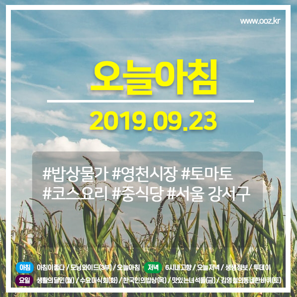 | 오늘아침 20190925 (3305) 환절기 피부, (우유)가 정답이다?! (0) | 2019.09.25 |