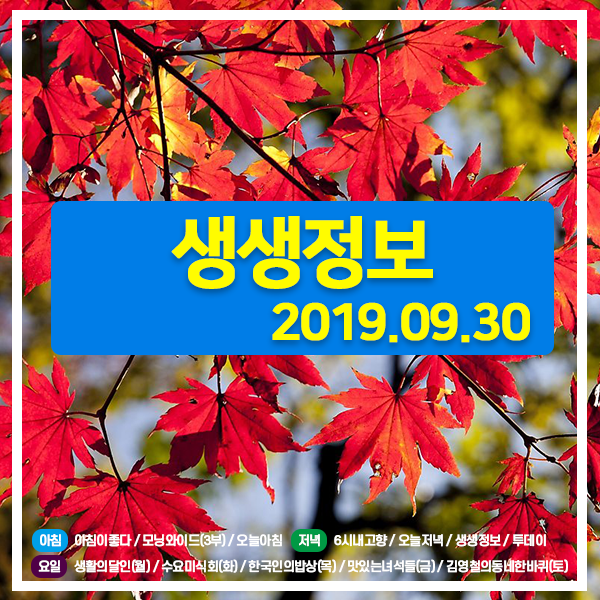 생생정보 20190930 (910) 서울도시건축비엔날레 / 묵은지닭볶음탕, 황금짜장면 / 간장게장+간장새우장 무제한 7000원, 순대국밥 4500원