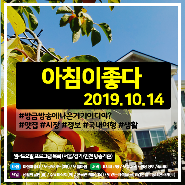 | 아침이좋다 20191002 (856) 좌충우돌! 1인 방송 도전기 (0) | 2019.10.03 |