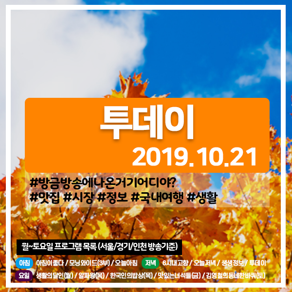 투데이 20191021 (2435) 중식형제 20년 갈비짬뽕(전북무주) / 석촌호수 멕시코쌈,순대,곱창(서울송파) / 항아리 숙성돼지 한판(서울홍대)