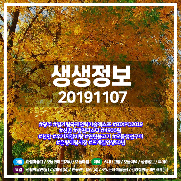생생정보 20191107 (934) #광주 빛가람국제전력기술엑스포 BIXPO2019 / #신촌 생면파스타 4900 / #천안 우거지갈비탕&숨은 백반 / 뜨개질인생 50년
