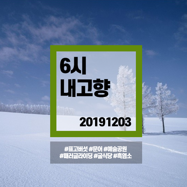 | 6시내고향 20191205 (6918) #경남남해 시금치 #서울 통닭 #경기시흥 오이도전통수산시장-방어,조개,수산물,킹크랩,활어회 (0) | 2019.12.05 |