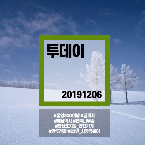 투데이 20191206 (2463) #통영 3GO여행 굴피자,해상택시,편백나무숲 #안산초지동 반찬가게 #서울혜화역 만두전골 #부천고강제일시장 23년 시장떡볶이(분식집)
