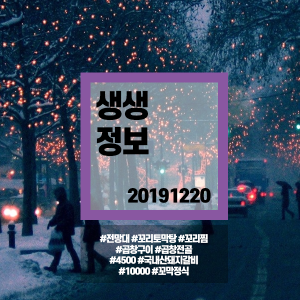 생생정보 20191220 (965) #전망대 #서울남대문시장 꼬리토막탕&꼬리찜 #서울왕십리역 곱창구이&곱창전골 #칠곡(구미) 4500원 국내산돼지갈비 #청주 10000원 꼬막정식