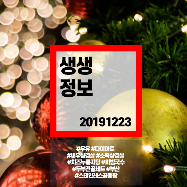 생생정보 20191223 (966) 우유다이어트 / #창원진해구 새우삼겹살,소떡삼겹살 #서울홍대입구역 치즈누룽지탕,비빔국수 #경기광주 두부전골세트 / 부산광역시 / 스테인레스공예왕
