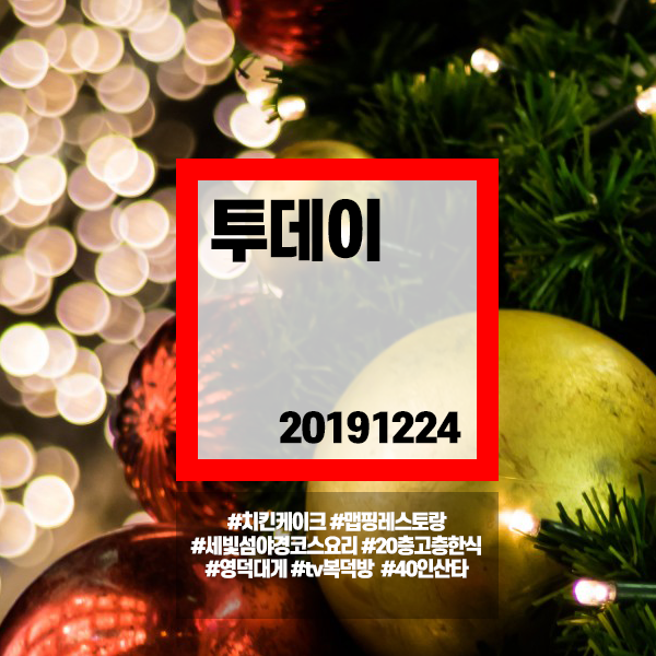 투데이 20191224 (2475) #진주 치킨케이크 #서울녹사평역 맵핑레스토랑 #서울반포한강공원 세빛섬야경코스요리 #서울오목교역 20층고층한식 #영덕 영덕대게 / tv복덕방