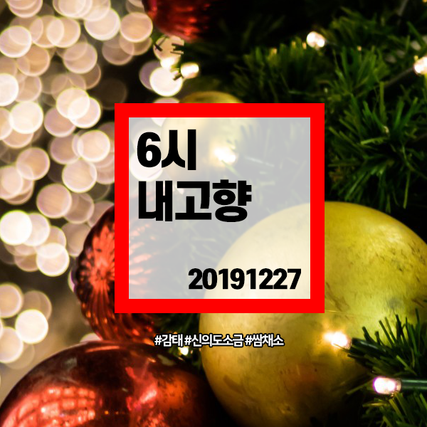 | 6시 내고향 20191226 (6933) #경북청도 곰탕 #인천 수산물,포차,담금장 (0) | 2019.12.27 |