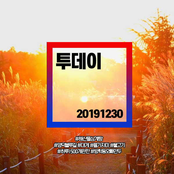 투데이 20191230 (2478) #수원세류역 해산물삼계탕 #영덕블루길 대게,물가자미,불고기 #서울방학동 오빠만두 (하루 1,500개 완판!-만두,도넛,꽈배기,찐빵)