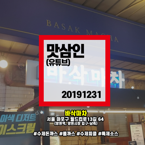 맛삼인(유튜브) 20191231 #서울망원역,망원동,망원시장 바삭마차 (수제돈까스,롤까스,수제피클,특제소스)