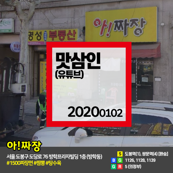 맛삼인(유튜브) 20200102 #서울방학동 아!짜장 (짜장면 1500원,짬뽕,탕수육)