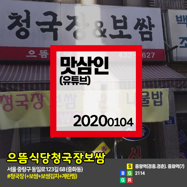 맛삼인(유튜브) 20200104 #서울중화동,중랑역,중화역 으뜸식당청국장보쌈 - 청국장+보쌈+보쌈김치+계란찜
