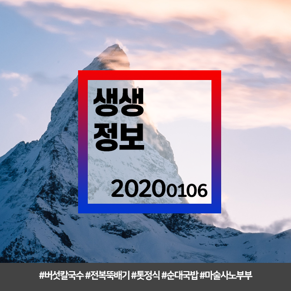 생생정보 20200106 (976) #안양 3,500원 버섯칼국수 #해남 전복뚝배기,톳정식한상,순대국밥 / 행복을 나눠주는 마술사 노부부