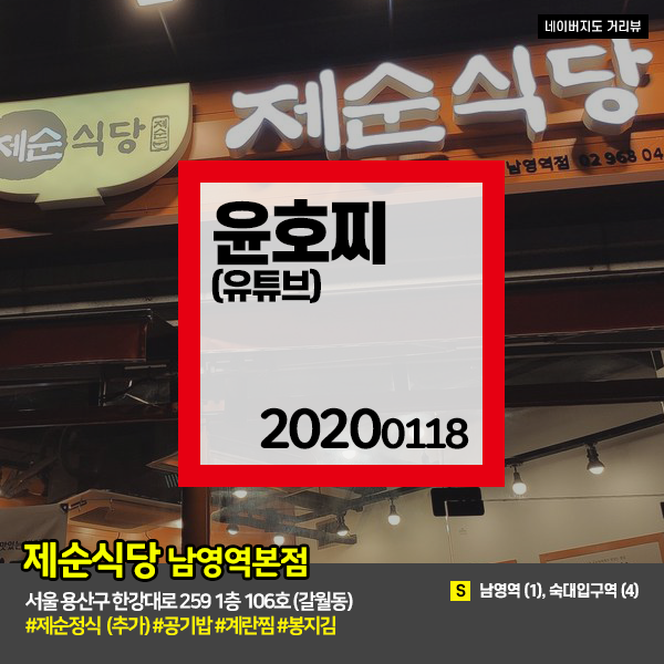 #윤호찌 #유튜브 #서울 #남영역 #숙대입구역 #제순식당 #제순정식 #제육볶음 #순두부찌개