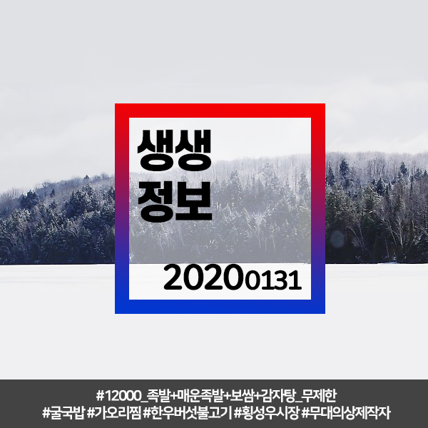 생생정보 20200131 (994) #인천신포역,동인천역 12000 족발+매운족발+보쌈+감자탕 무제한 #서울교대역(서초동) 굴국밥,가오리찜 #서울상월곡역(장위동) 한우버섯불고기