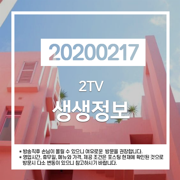 2020년 2월 17일 KBS-2TV 생생정보 1005회에 소개된 곳입니다.