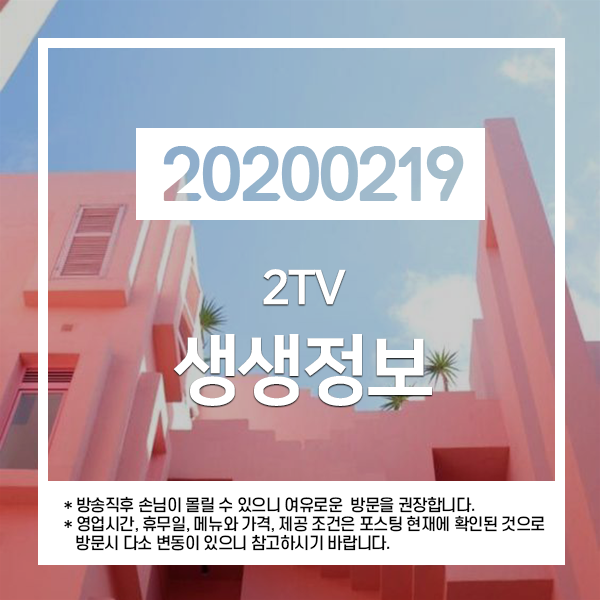 2020년 2월 19일 KBS-2TV 생생정보 1007회에 소개된 곳입니다.
