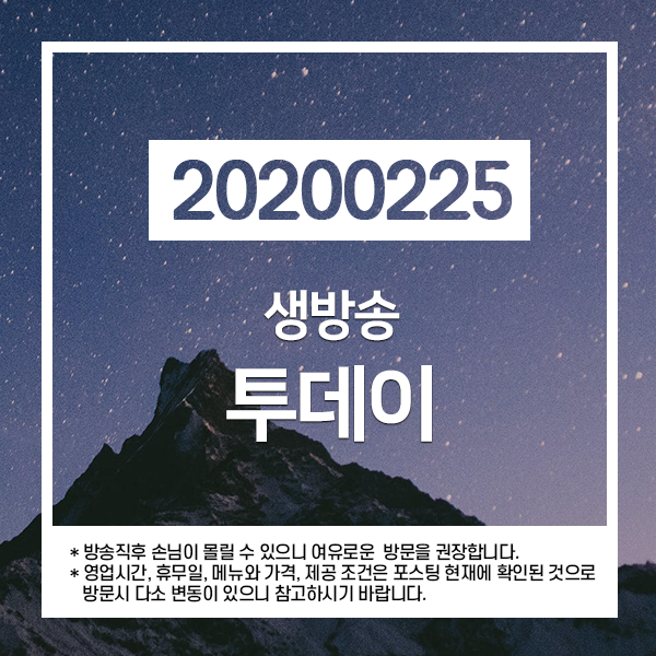 2020년 2월 25일 SBS 생방송 투데이 2516회에 소개된 곳입니다.