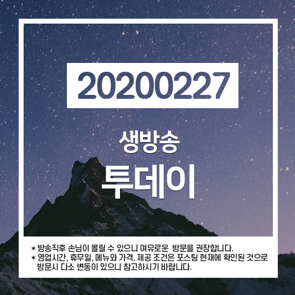 2020년 2월 27일 SBS 생방송 투데이 2518회에 소개된 곳입니다.